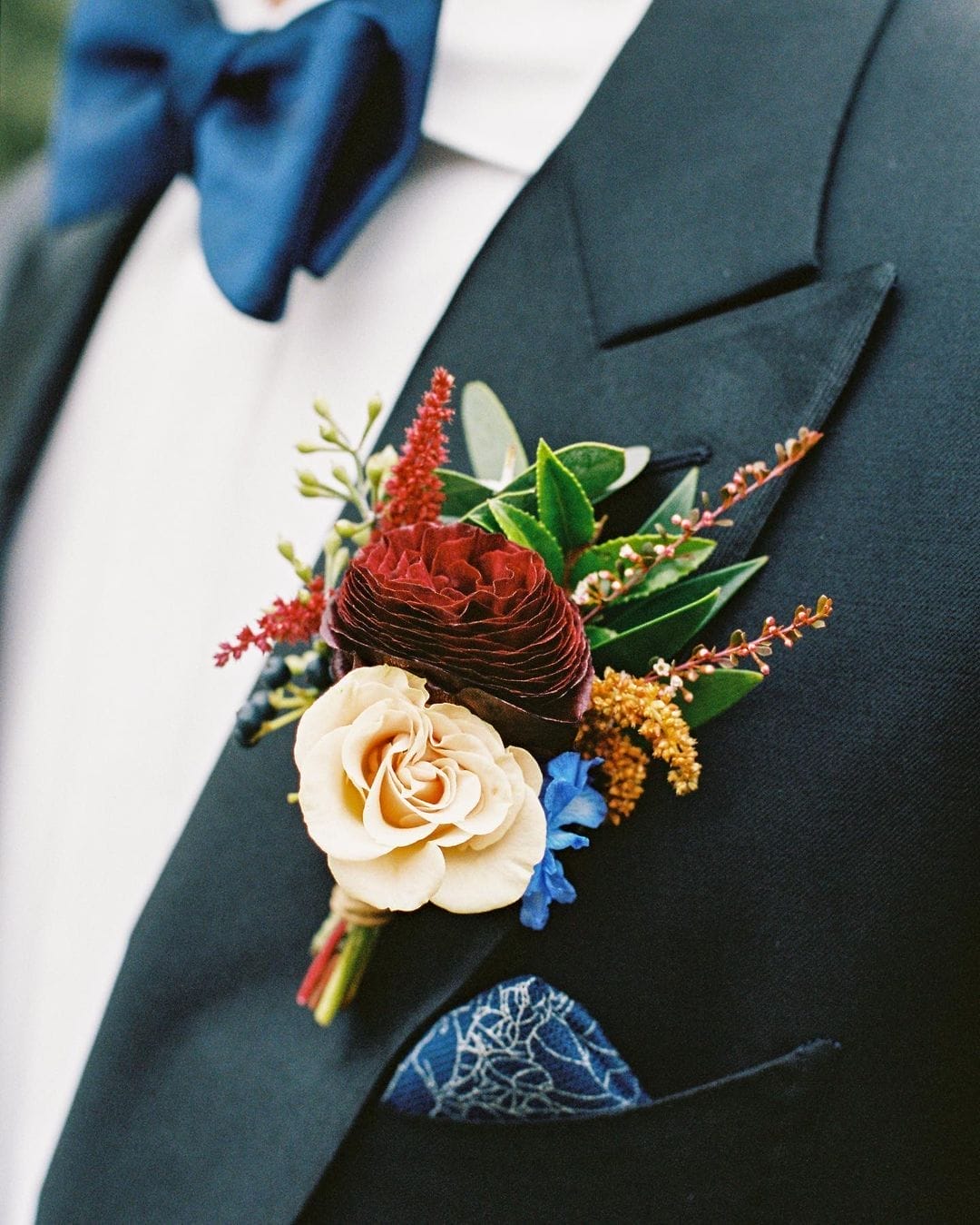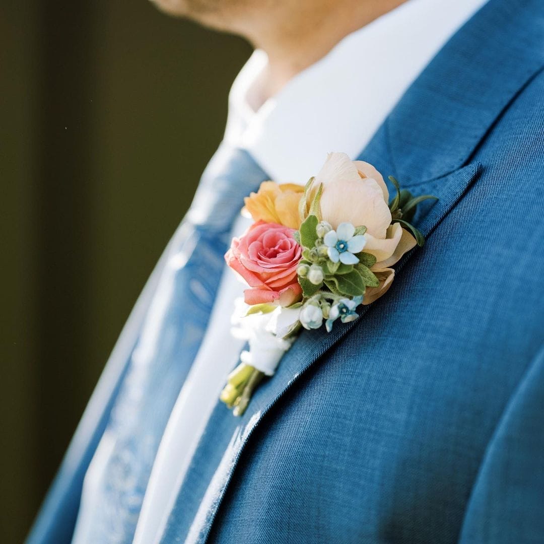 Go for flowers that can tough it out without a water source to ensure boutonnière resilience. We recommend steering clear of the big blooms and going for the smaller, more delicate-faced ones.